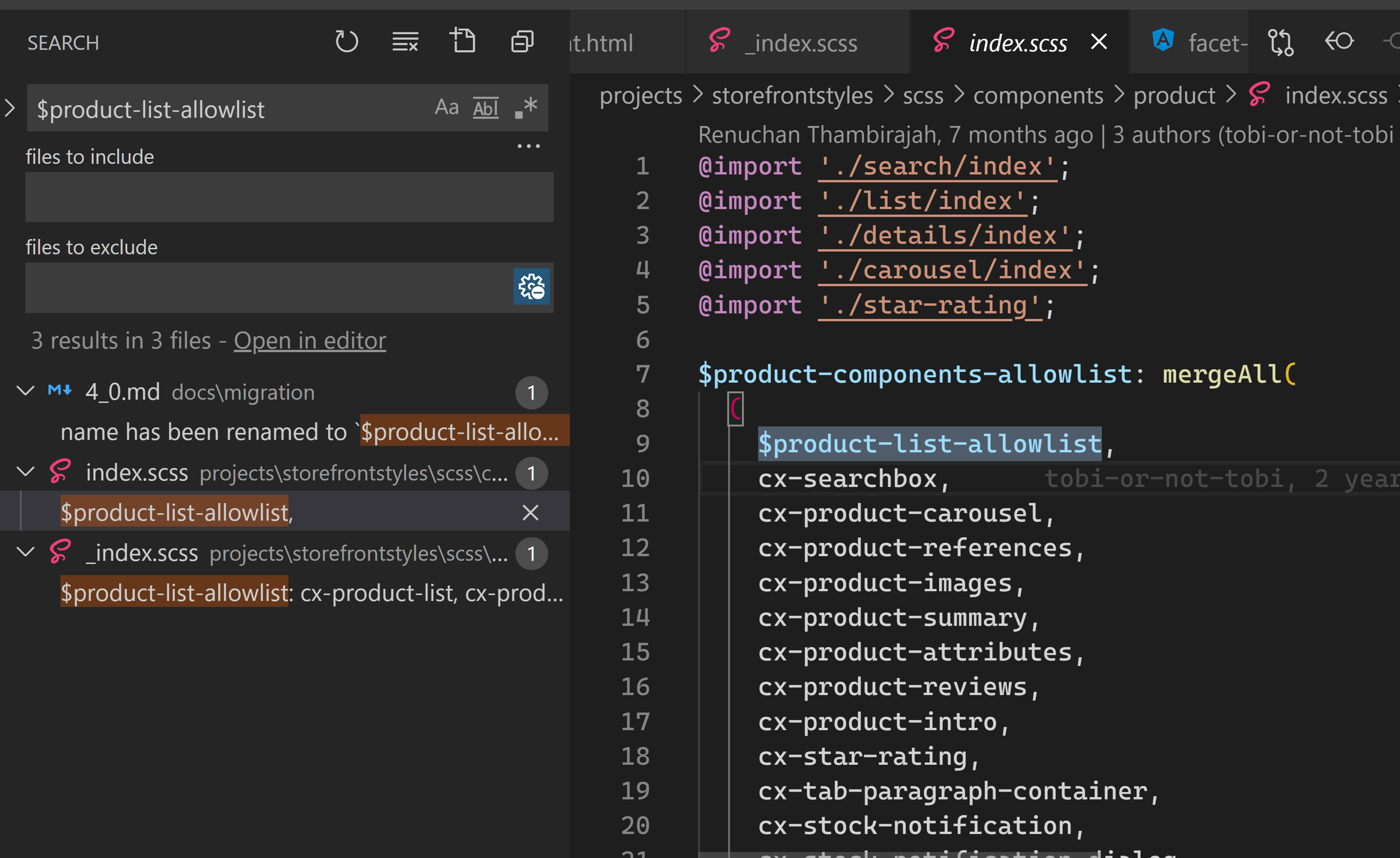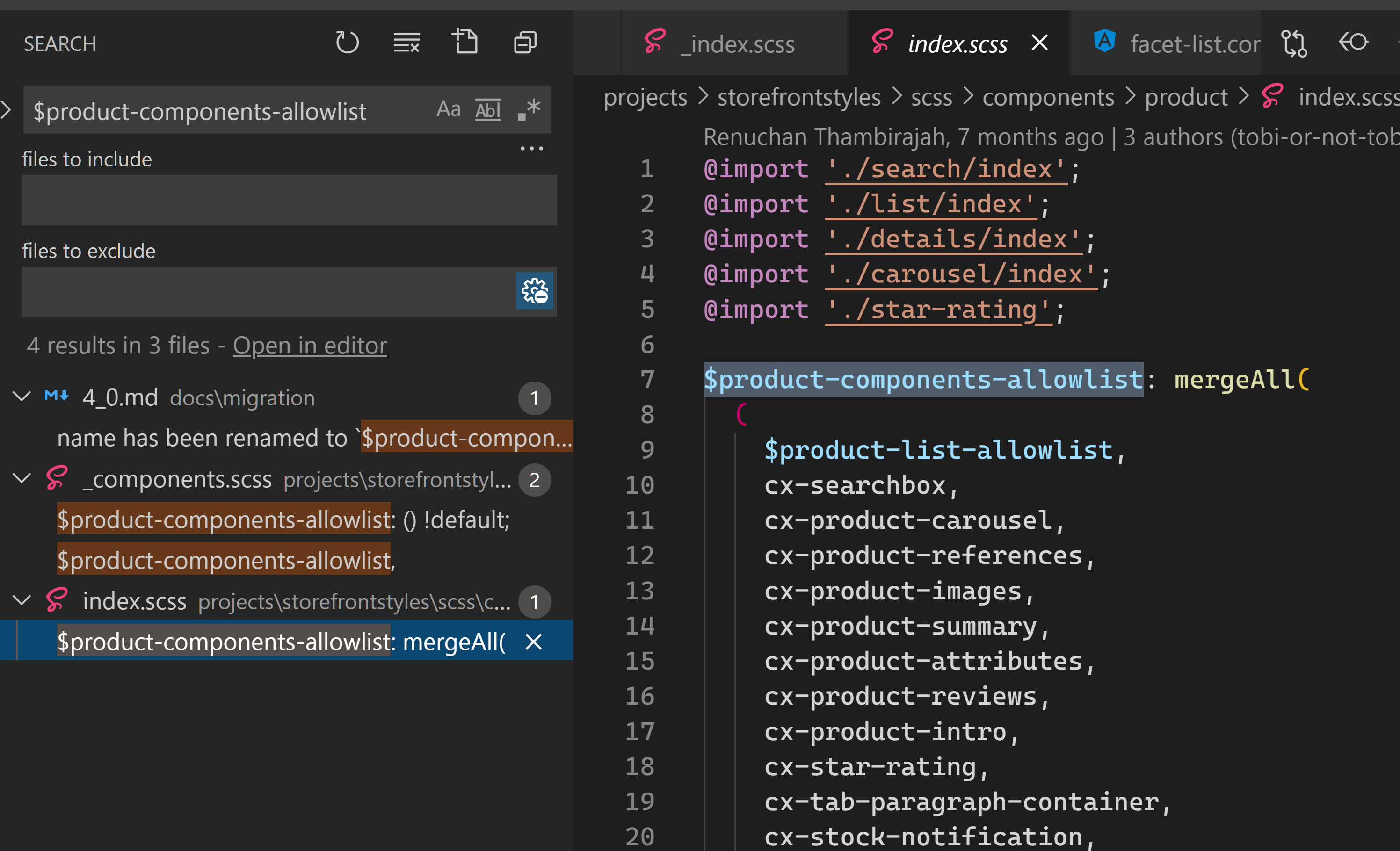 【摘要】 看一个 SAP Spartacus UI 中的具体例子:第一行的 @import ‘./facet’, 实际上导入的是 _facet.scss 文件。第 11行 的$product-list-allowlist:可以把 $ 即美元符号定义的这个标识符看成是编程语言中的变量。它又被 $product-components-allowlist 引用:这个 mergeAll 的作用:注意 !def...
