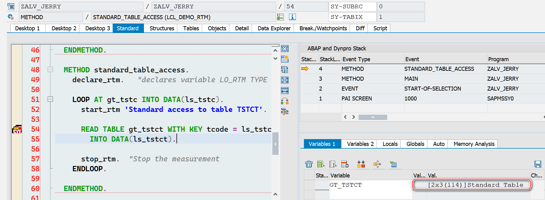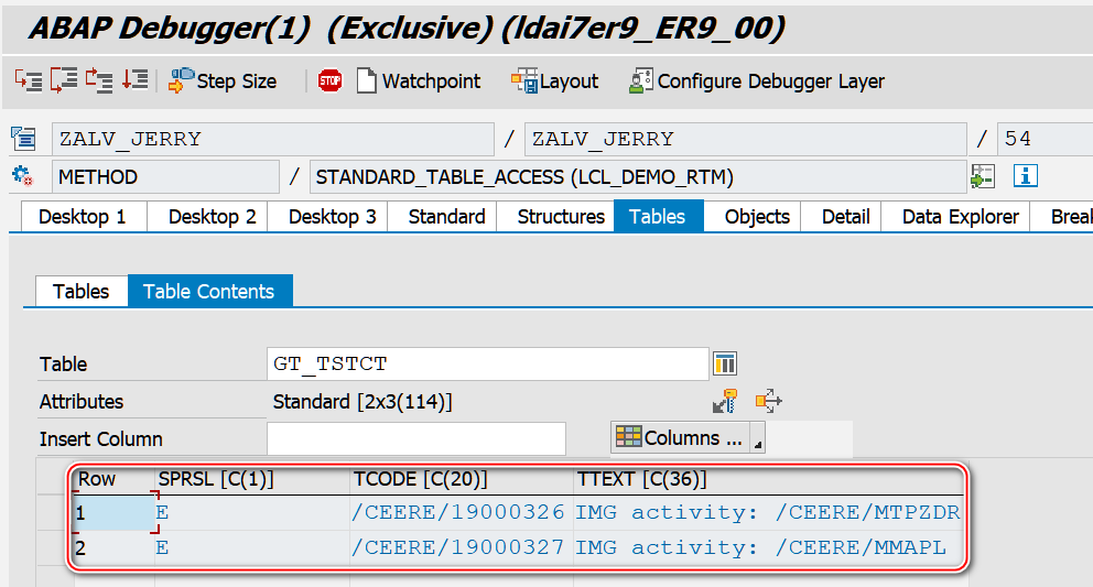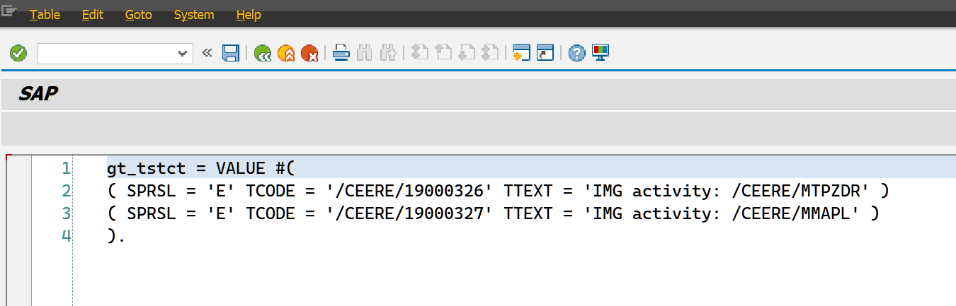 假设我想把内表 gt_tstct 里的所有记录,全部提取出来,用于 ABAP 单元测试里: