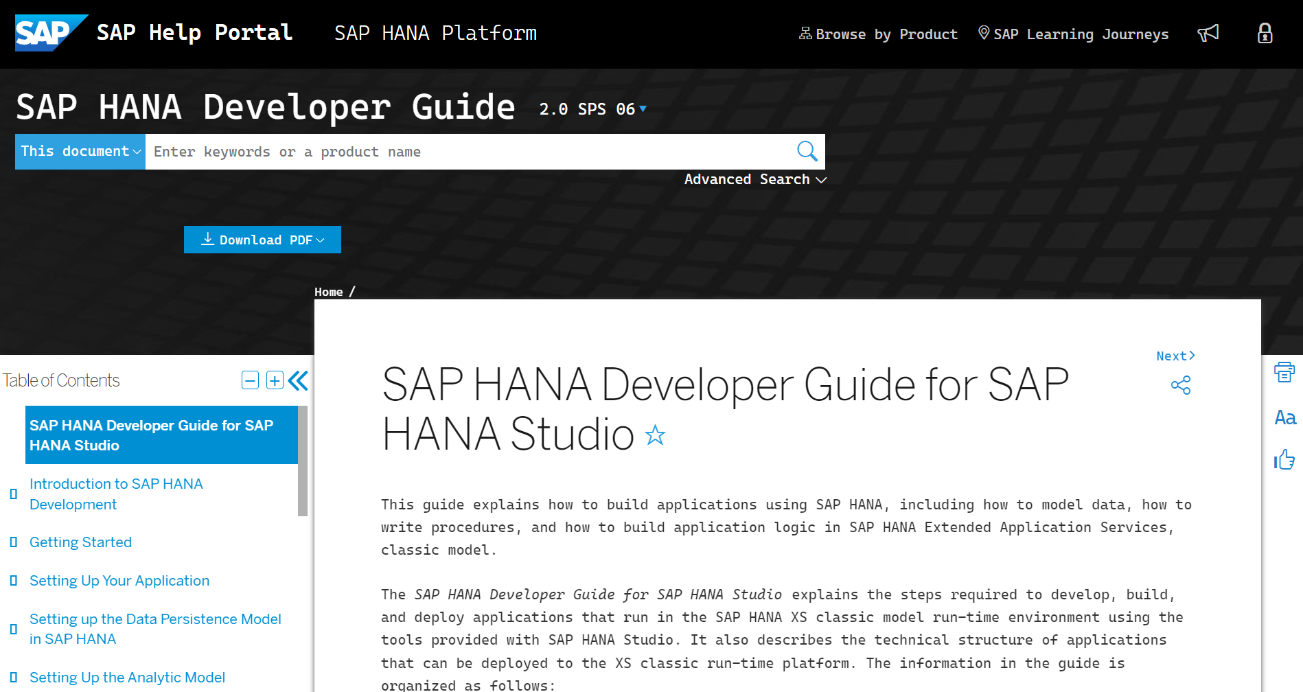 关于这套自成体系的开发技术的详细介绍,可以在 help.sap.com 上搜索关键字 SAP HANA Developer Guide 来获得。
