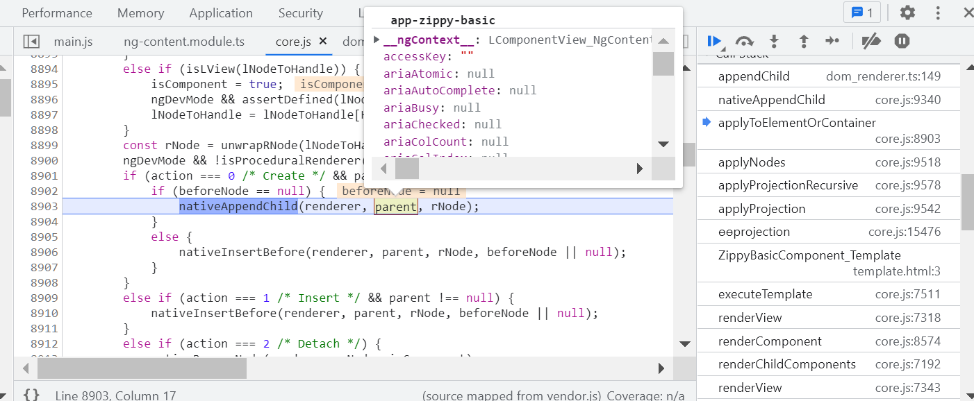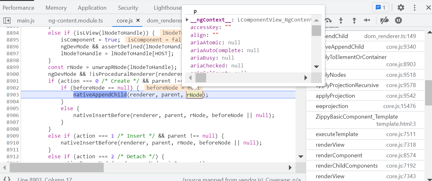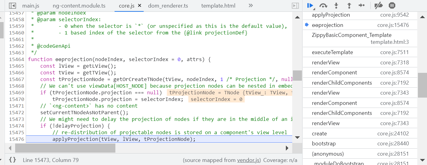 接下来是 Angular 处理整个内容投影逻辑的关键: