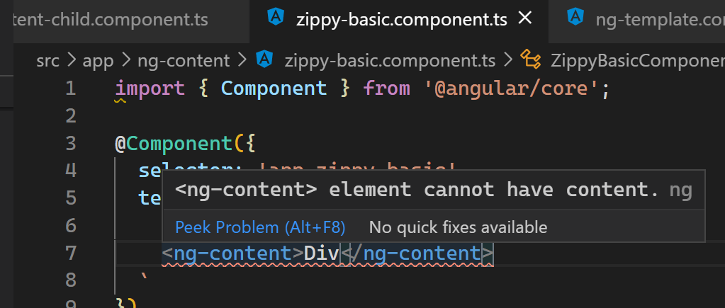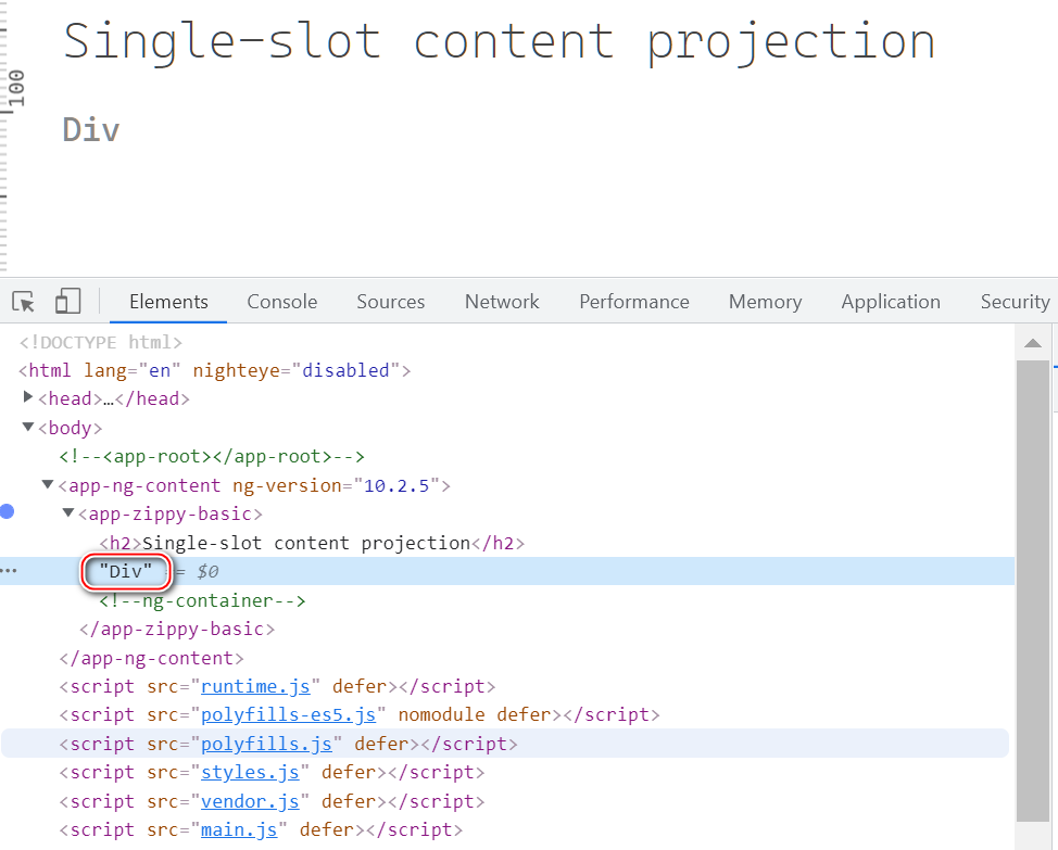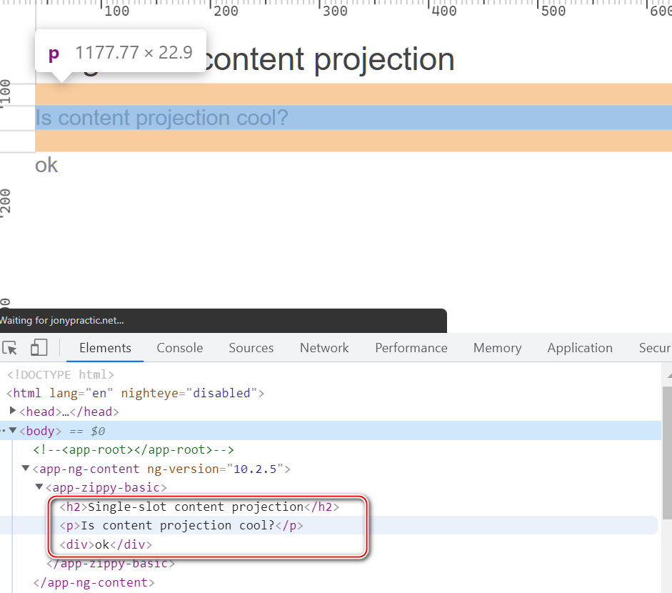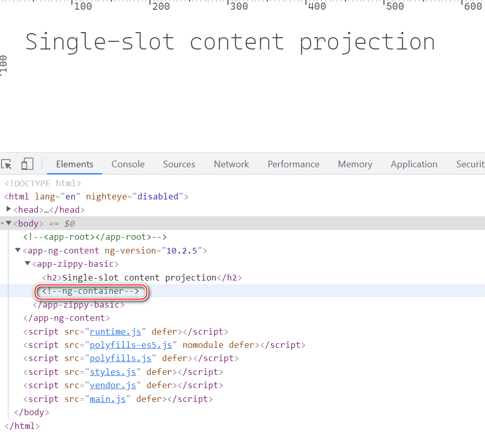 我期望 app-zippy-basic 的使用者,将传入的 content,投射到元素 ng-container 内部。