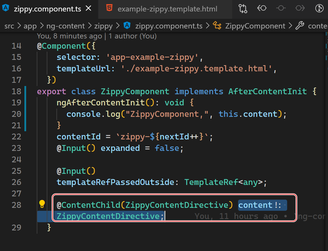 @ContentChild(ZippyContentDirective) content!: ZippyContentDirective;