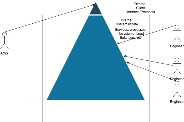 客户体验下面的一切都是实现细节。如何确保客户期望交付的价值被实际交付并不重要。有两个世界:客户和我们。你有没有觉得世界正在融化,一切都着火了,但却被所有人告知客户再幸福不过了?在事故中的困难是对这两个观点进行描述和推理,并理解任何给定的事故对客户的实际影响是什么。这两种观点会在事件发生时以无益的方式影响我们。作为一个专注于实现的操作员,很容易迷失在系统状态中,认为任何不健康的服务、主机或客栈延迟的增加都需要关注。