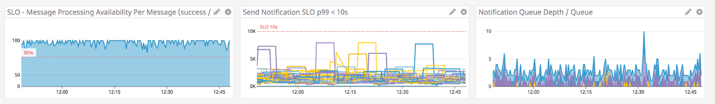 选择要围绕哪些信号构建目标和支持数据收集超出了本文的范围,也是非常重要的。此外,这些SLO可能需要在定义方面进行改进,本文的目标是说明如何使用SLO将客户告知非客户。虽然表征服务延迟的最准确方法是将合成事务生成为发布服务,但我们可以使用基于通知和队列的度量来创建客户端体验的代理。