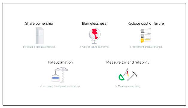 - 无可指责:复杂的系统以有趣和复杂的方式失败。接受失败为正常状态是SRE内的一个重要实践。事故发生后,进行无可指责的验尸,以提高对故障模式的认识,并确定有效的预防措施,以减少类似事故的可能性或影响。