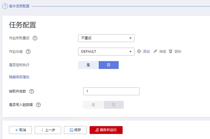 同样,这一步可配置失败重试机制,防止因网络问题导致迁移失败,同时在高级选项中还可根据迁移作业大小配置作业的并发度,由于我们的演示数据量不大,因此不做配置,保持默认即可