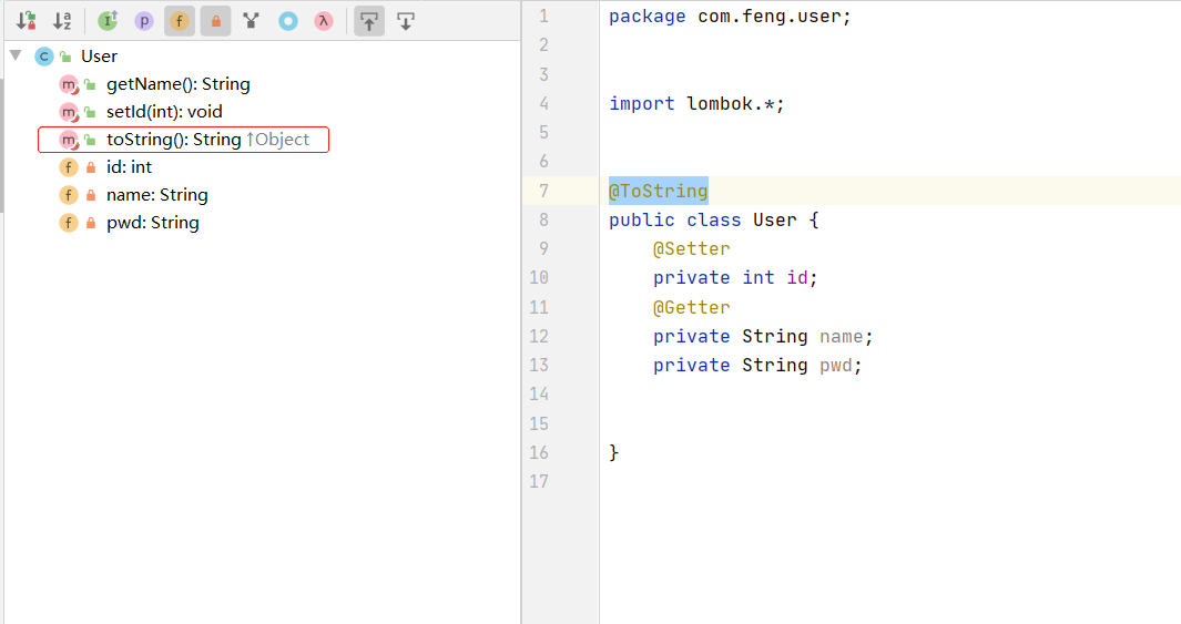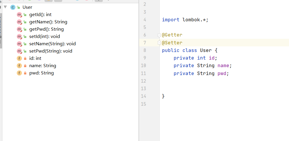 @Setter :注解在类或字段,注解在类时为所有字段生成setter方法,注解在字段上时只为该字段生成setter方法。