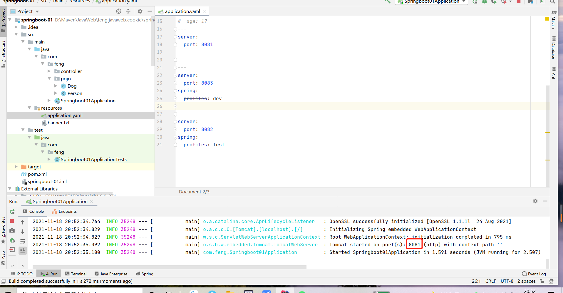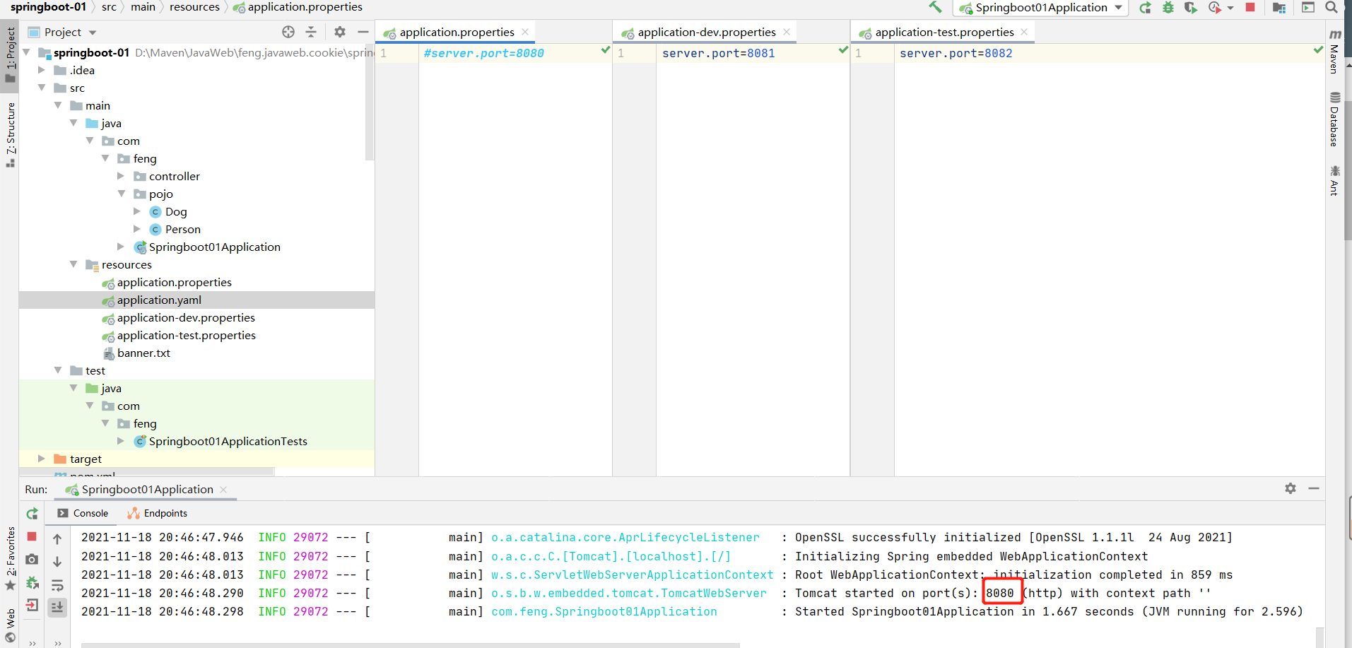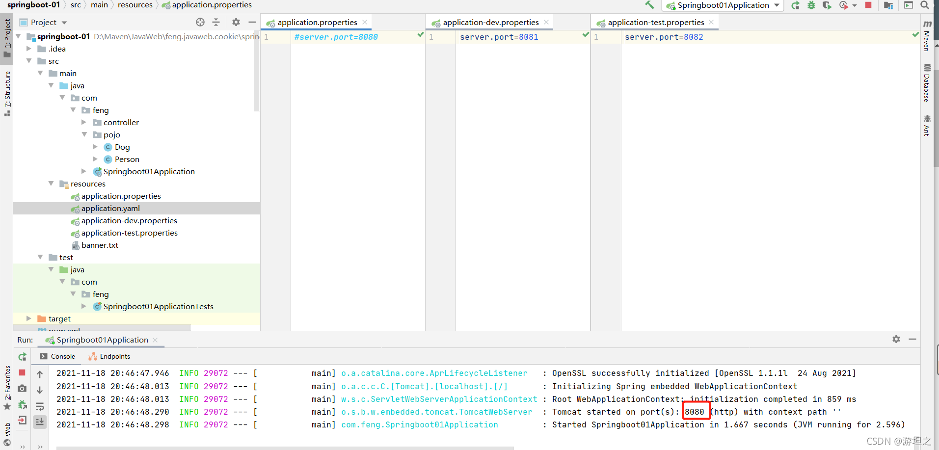 端口号默认是8080,可以通过server.port修改自己需要的端口号。