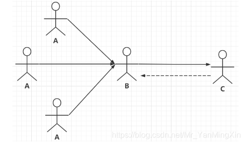 显然,这样可以只让B与C进行通信,类似于多加了一层的代理层,专门用来处理请求,再来一个现实点的例子: