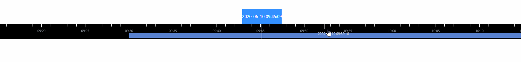 主要功能就是可以拖动时间轴来定位当前时间,可以通过鼠标滚轮来修改当前时间分辨率,也支持显示时间段功能,动图未体现,可看下面的本次demo效果示例:
