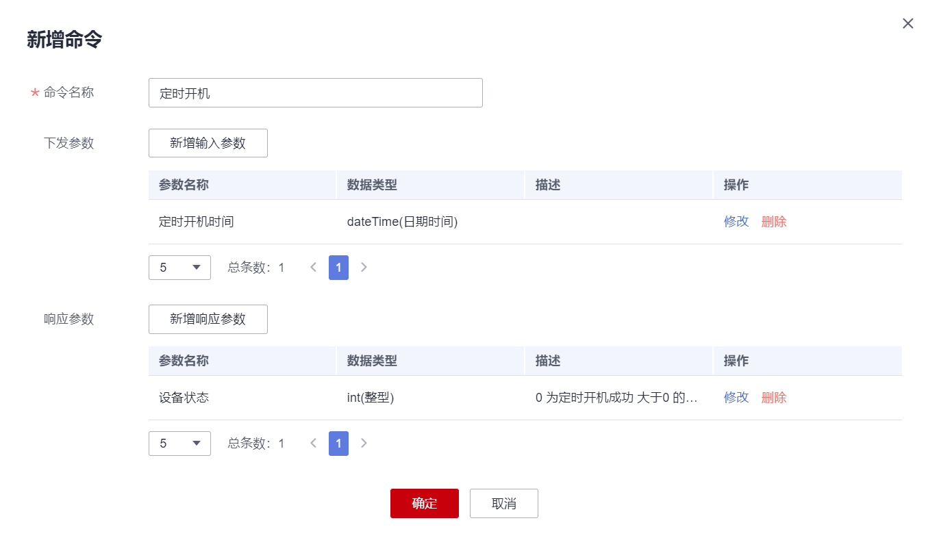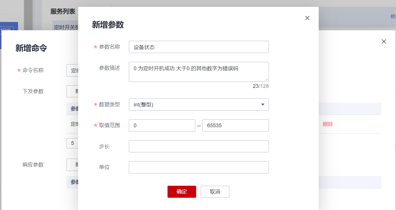 设备执行 定时开机 后,需要返回一个状态码给 IoT 平台,告知设备实际的执行情况。我们把这个返回状态码命名为 设备状态,其数据类型为整型,0 表示开机成功,大于 0 的返回值,说明开机失败。每个大于 0 的值映射到一个具体的错误原因。