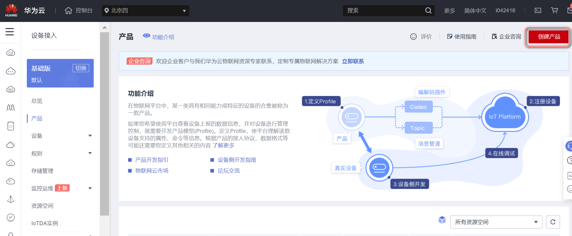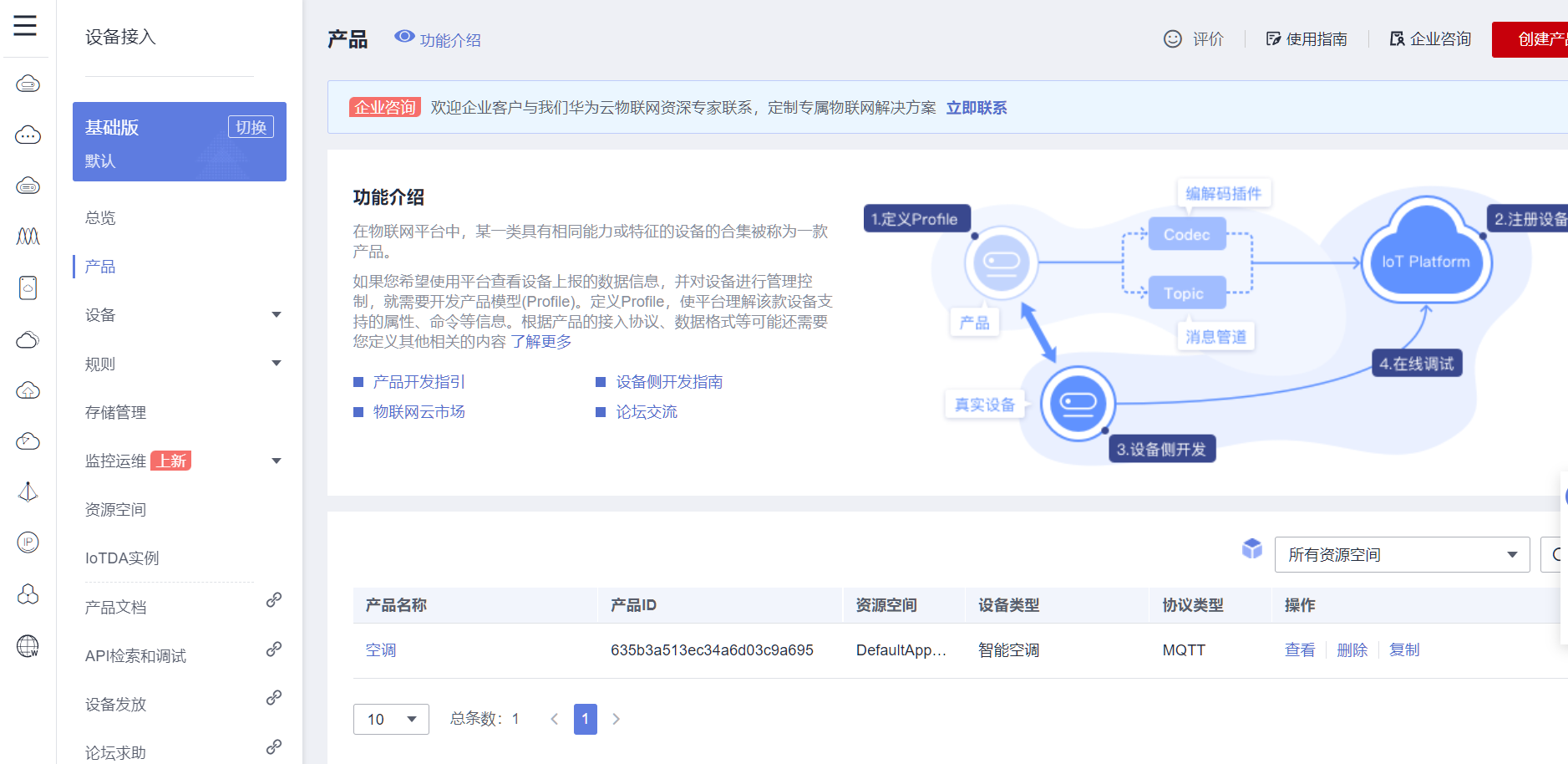 我们通过这个链接进入华为云 IoT 设备接入控制台: