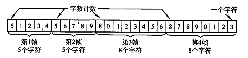 字符计数法是指在帧头部使用一个计数字段来标明帧内字符数(计数字段提供的字节数包含自身所占用的一个字节)。