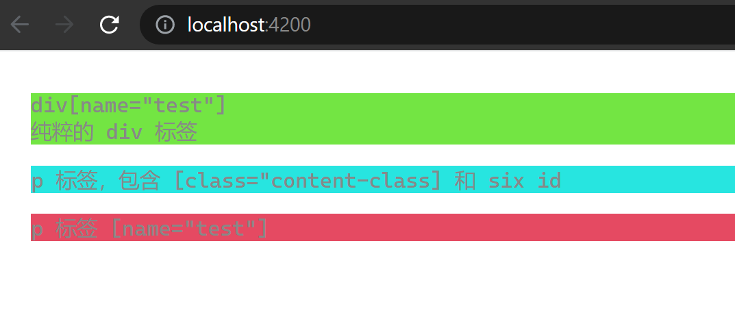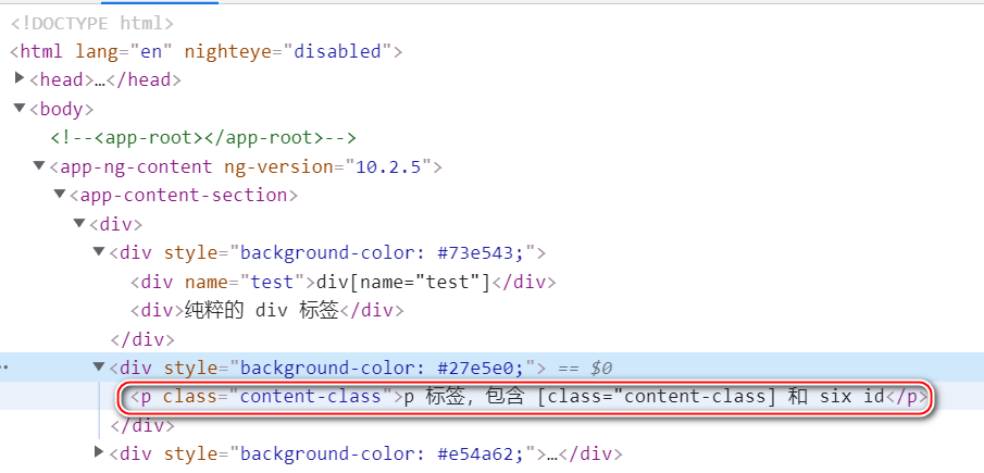 <p #six class="content-class">p 标签,包含 [class="content-class] 和 six id</p>