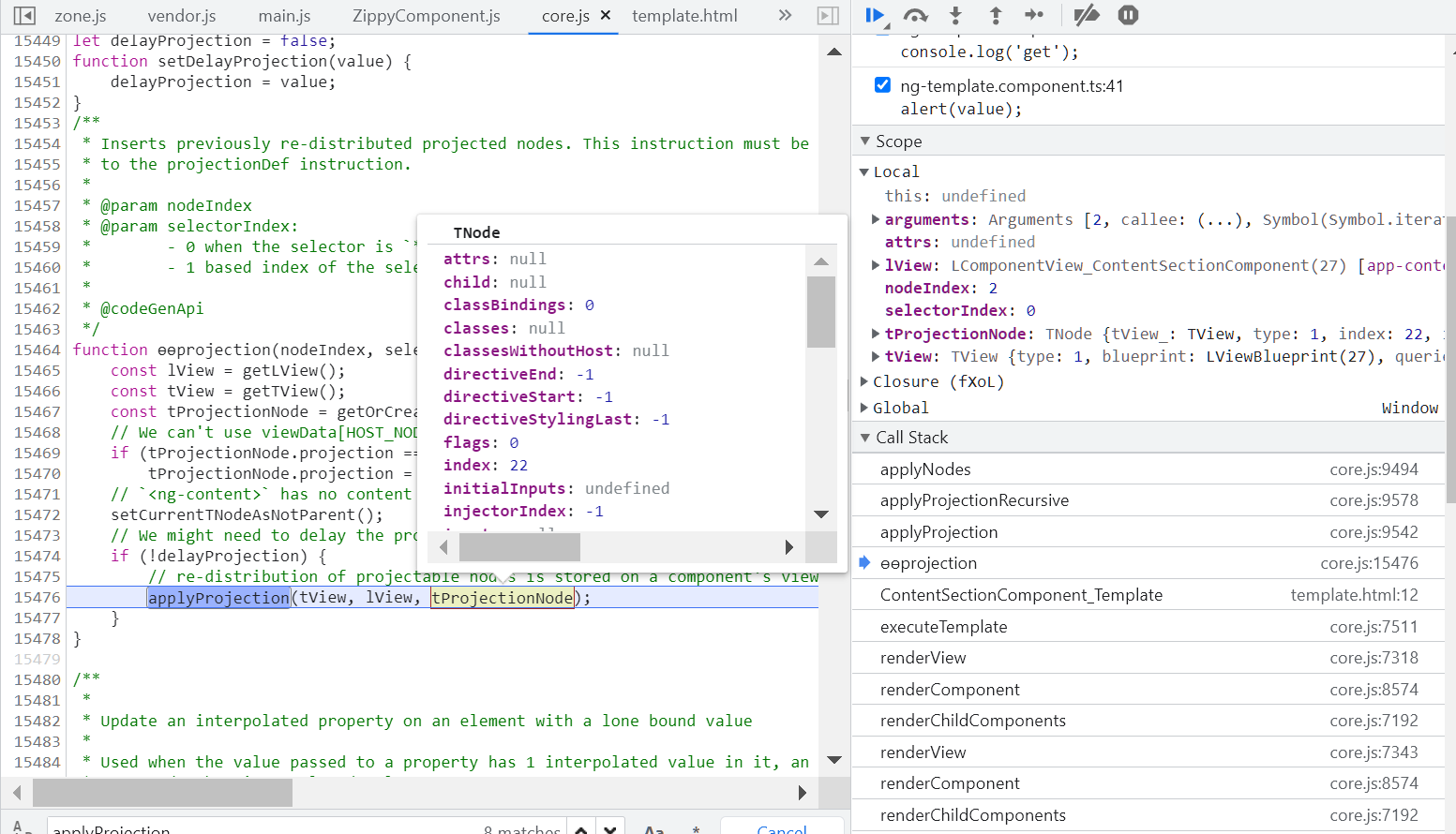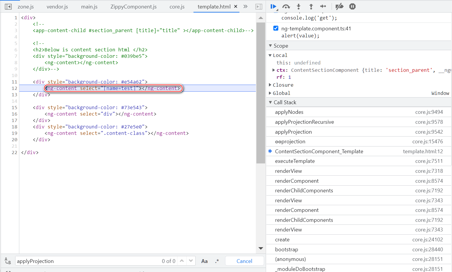 通过单步调试的方式学习 Angular 中带有选择器的内容投影使用方式