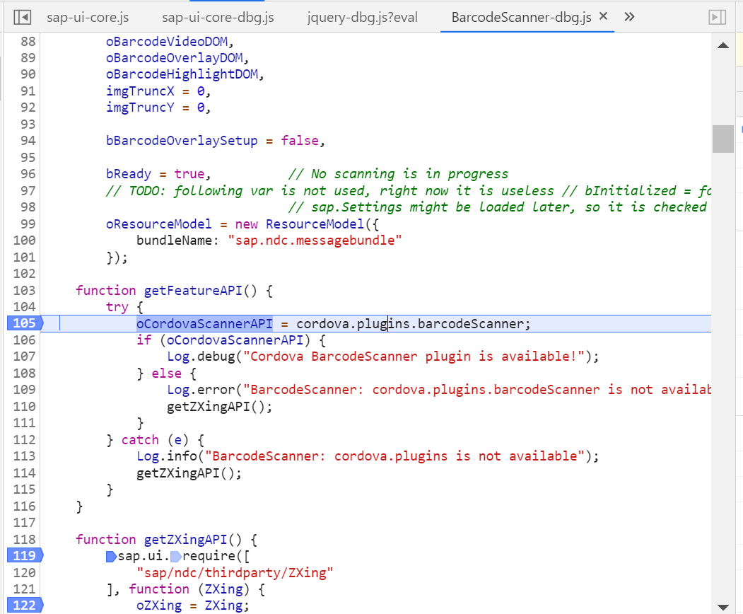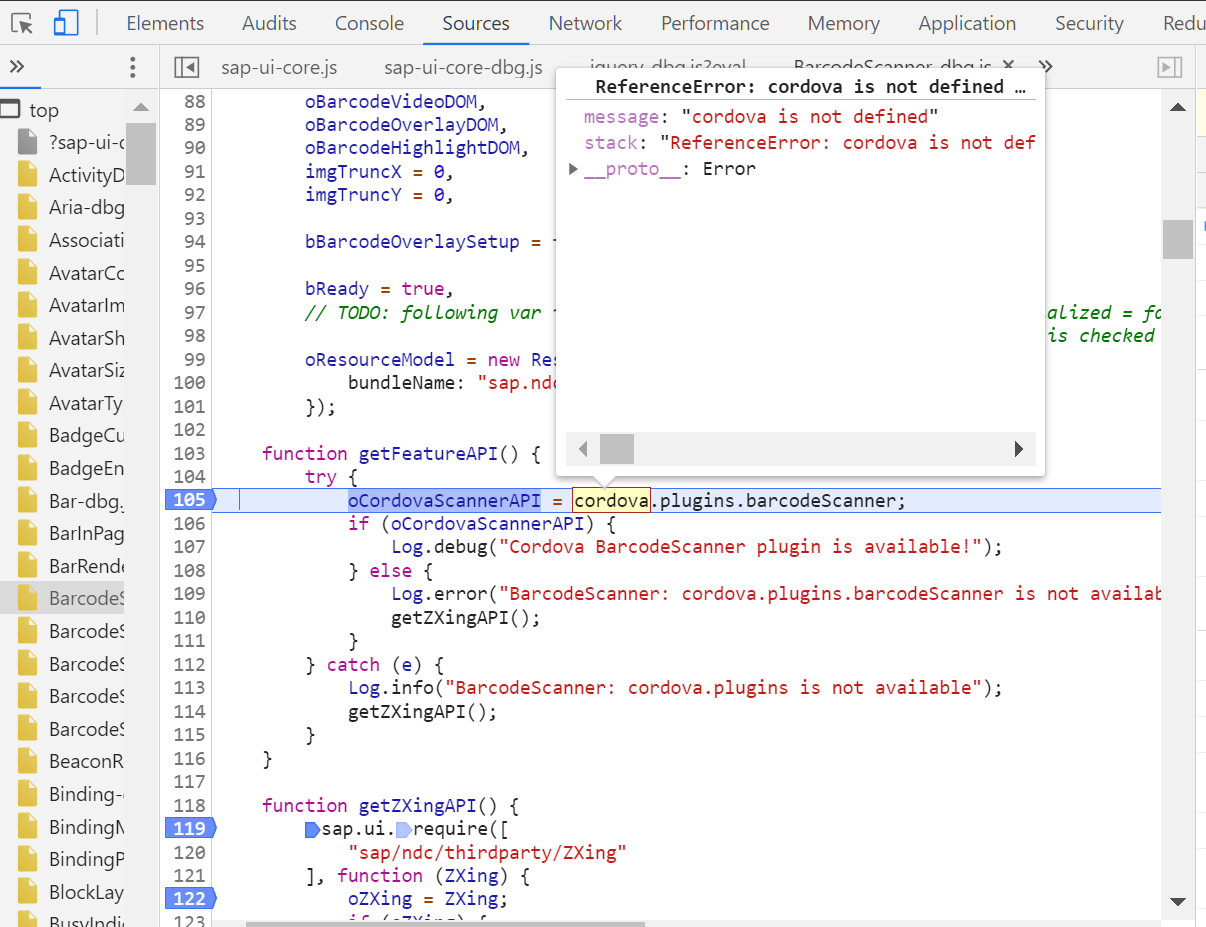 SAP UI5 barcode 控件的 feature 检查探测机制单步调试 - checkCordovaInIframe