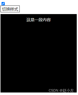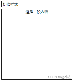 页面如上,我们需要在点击”切换样式“按钮的时候,将下方的白框变成黑色,将边框线及里面内容变成白色。