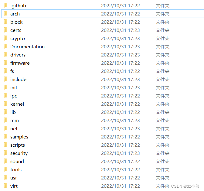 - arch:架构,不同架构的CPU的子目录,如arm这种cpu的所有文件都在arch/arm目录下