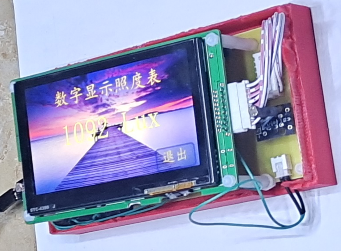 主控为MSP430,使用一个光敏电阻,读取其的AD值,经过均值滤波等一系列处理,最后通过串口屏显示出来。