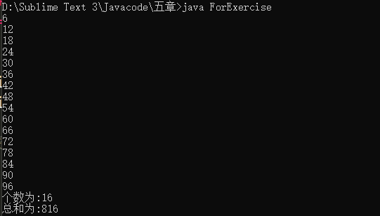 打印1~100之间所有是6的倍数的整数,统计个数及总和。