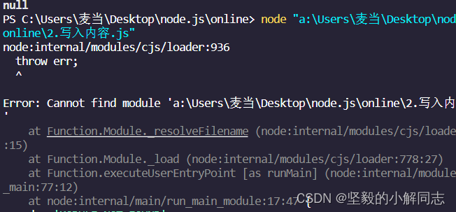 写入失败 则返回一个错误对象,当我们写的盘符不存在或者文件不存在则会报错,如果盘符文件存在,文本不存在则会自己创建一个, 写入方式 是覆盖。