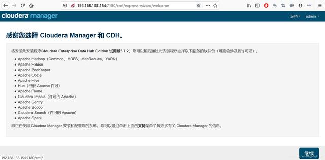 浏览器访问地址:http://192.168.133.154:7180 ,会提示登录,账号和密码都是admin: