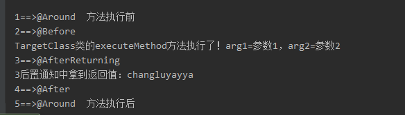 System.out.println("TargetClass类的executeMethod方法执行了!"+"arg1="+arg1+",arg2="+arg2);
