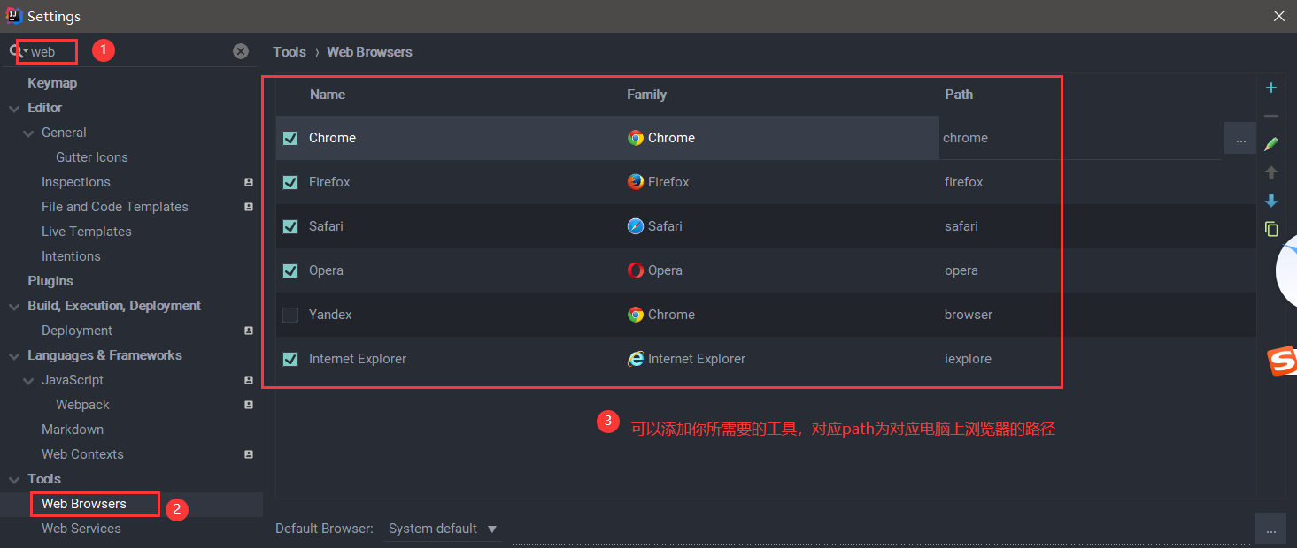 我们添加一个页面,然后在右边即可选择对应的浏览器进行浏览: