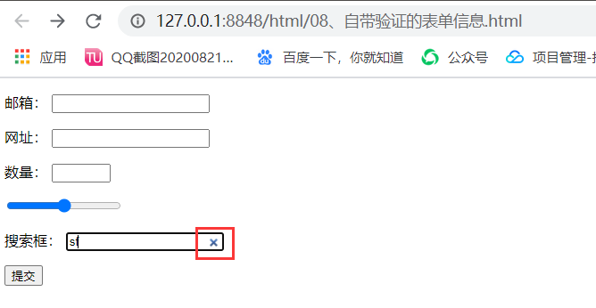 自带验证功能的标签都是input标签,type类型分别为email、url、number、range、search