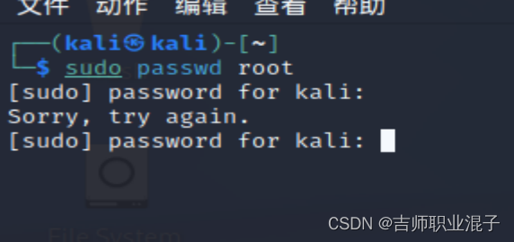 在输入密码时,kali不会将你的密码显示出来,直接填就可以了。