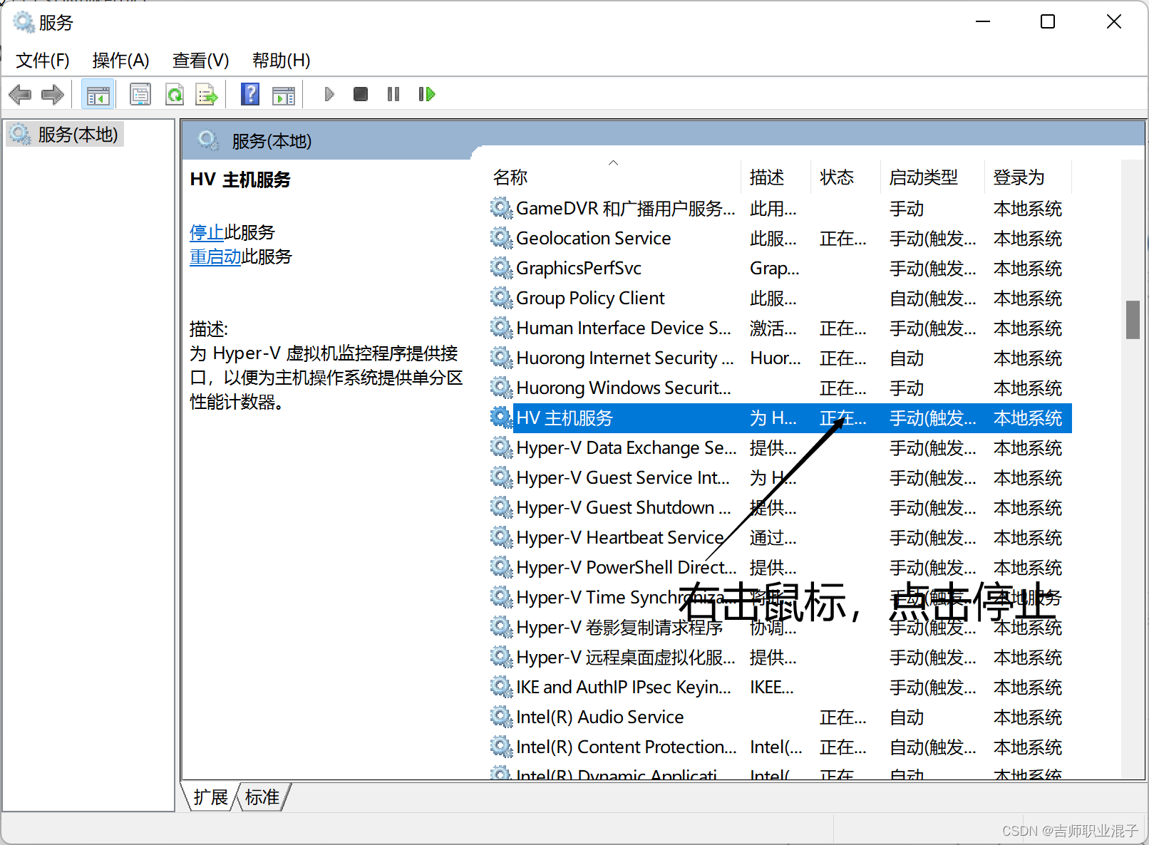 方法一中,,进入services.msc后,在关闭Hype-V的时候,我们应该同时启用一个选项。