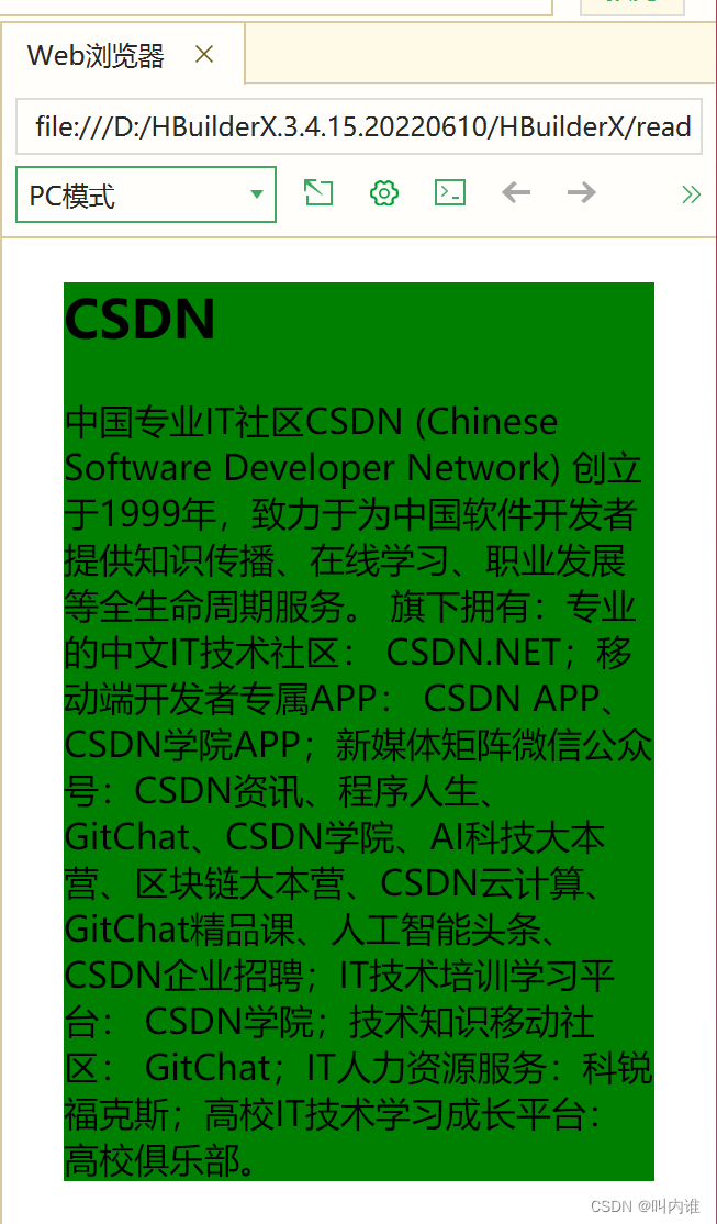 - <body> 与 </body> 之间的文本是可见的页面内容