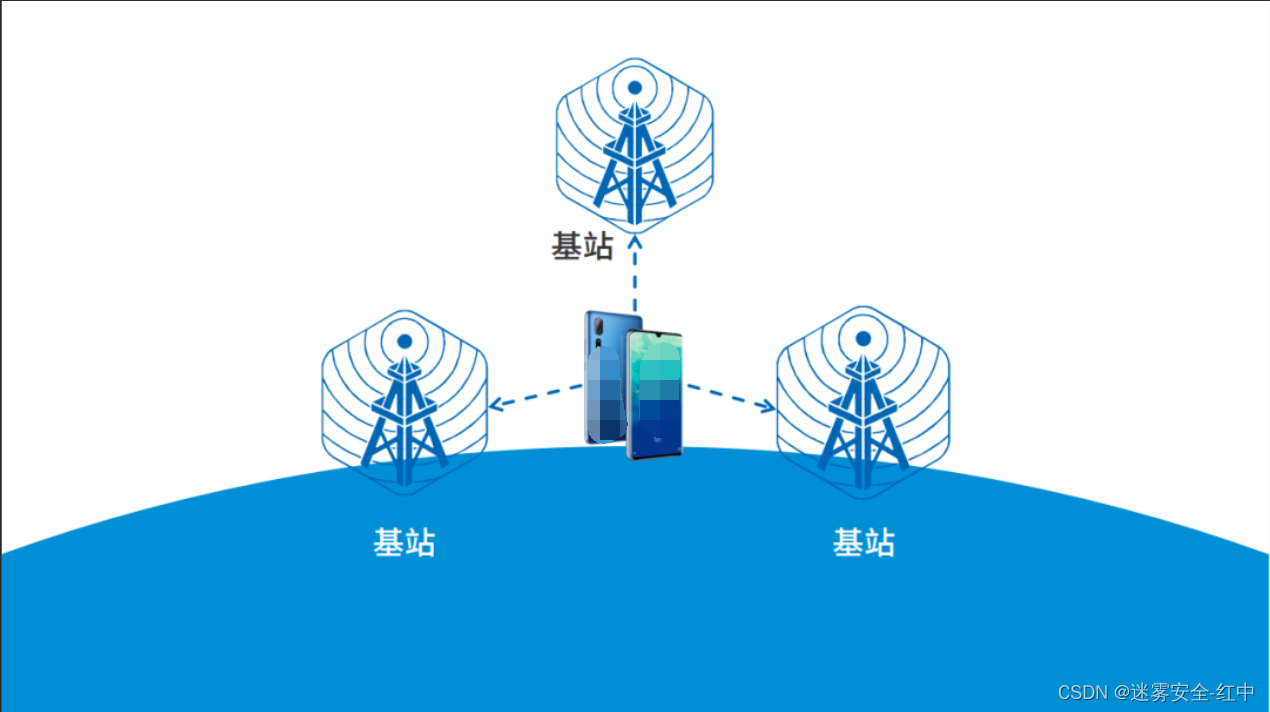 根据信号发出返回的时间差,再配合基站的地理位置,利用三个基站同时测量就可以准确的测量出个人所在的位置。