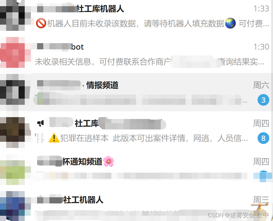 在电报上,有很多的社工机器人,只要你有对方的手机/QQ/微信等账号,即可爆出对方的姓名,住址,身份信息,学院等等等等