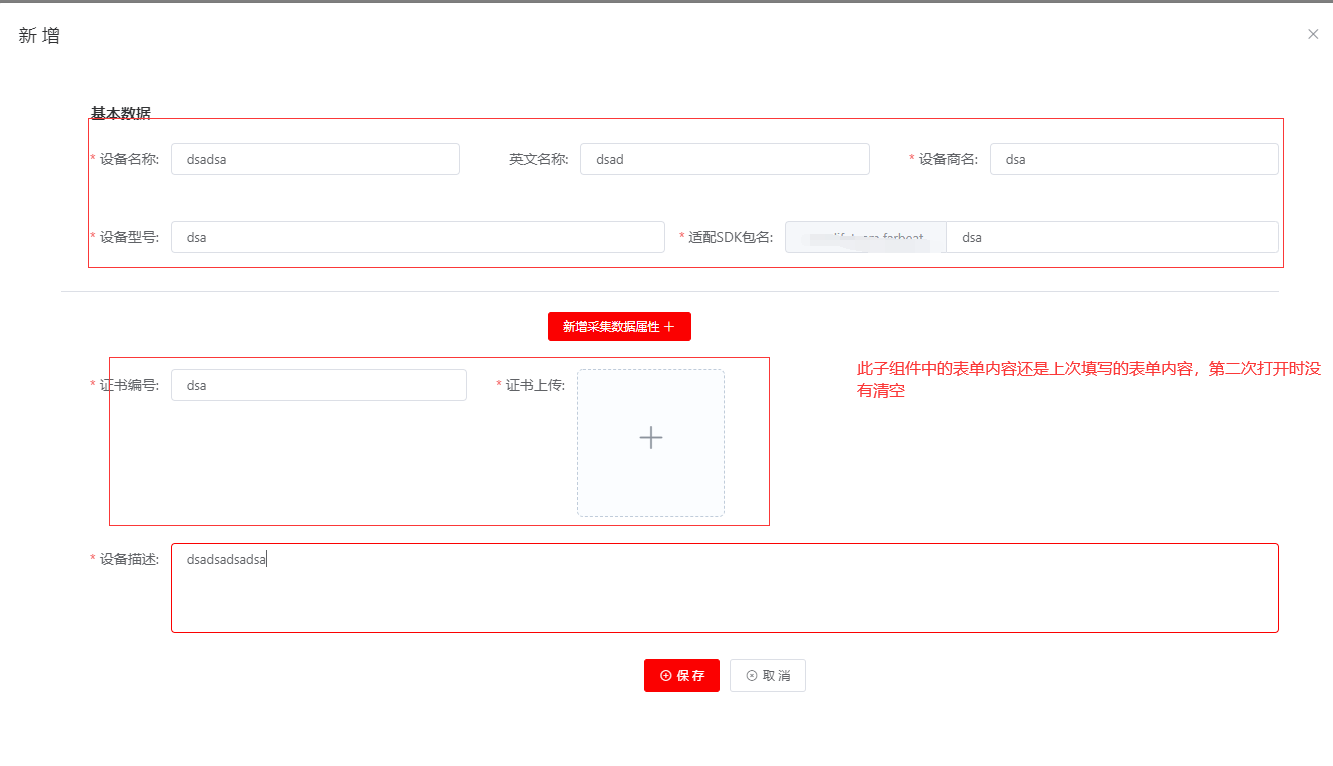 - 一开始我和同事想的是表单没有清空,于是我们就开始操作表单。比如点击添加按钮的时候,清空表单,发现不行;每天添加完之后,清空表单,发现不行;弹框的时候清空表单,发现还是不行!