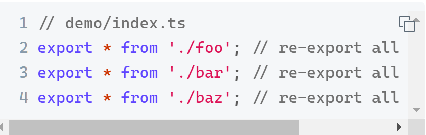 按照惯例,barrel file 被命名为 index,因为大多数模块加载器在解析绝对路径时都会默认查找该文件,这将允许我们从路径中省略文件名,而只指向一个文件夹,这算是一个命名规范。