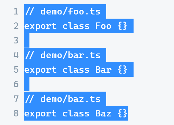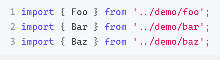 import { Foo, Bar, Baz } from '../demo'; // demo/index.ts is implied