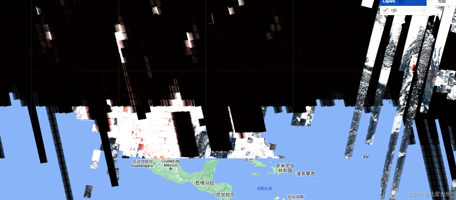 这个问题在于,我们作用对象是一个影像集合而不是影像,所以才会出现这种状况,因此我们就首先要将影像集合通过,reducer进行聚合或者镶嵌,这样整体的影像就成了单景影像,从而实现正确的操作。 这里我们不建议加载全球的影像,要筛选边界,从而减小运算量。