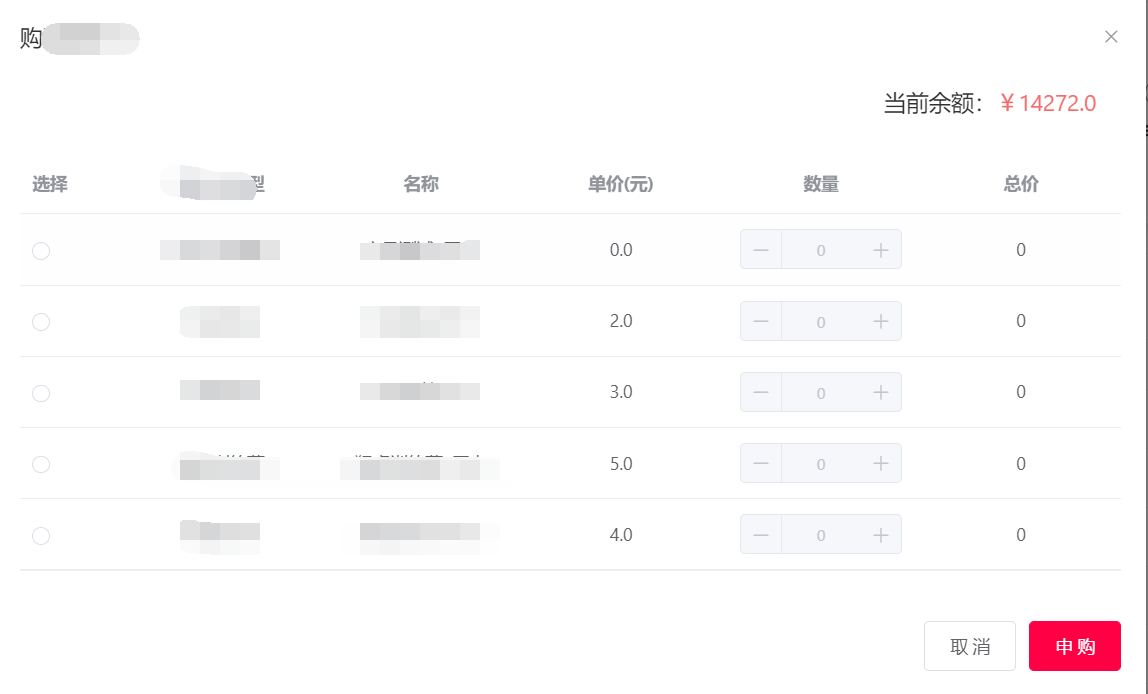 【摘要】 大家好,我是雄雄,欢迎关注微信公众号:雄雄的小课堂 前言需求是这样的:用户单击购买产品的按钮时,会出现一个产品的列表,但是呢只能买一种产品,暂时不可以多选。效果如下所示:原来做的是,单击前面的单选按钮,后面的数量表单放开禁用,可以选择和填写;现在需要改成,直接点击某一行,则改行自动选中,当然数量表单也放开可供用户直接输入和填写。 实现方法框架原来用的是avue写的,这个框架,确实好用,可以提...