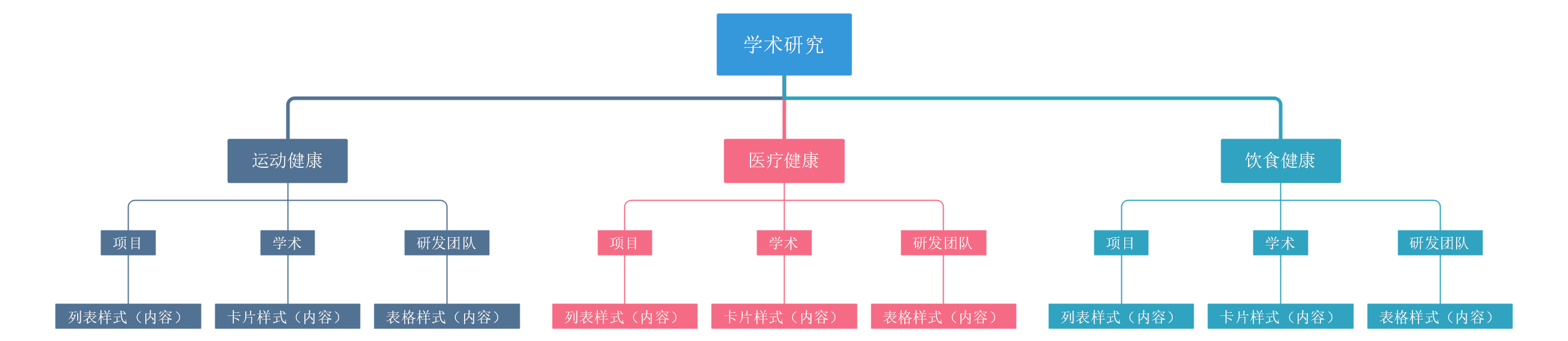 - 项目、学术、研发团队:三级分类,父级分类分别为二级分类