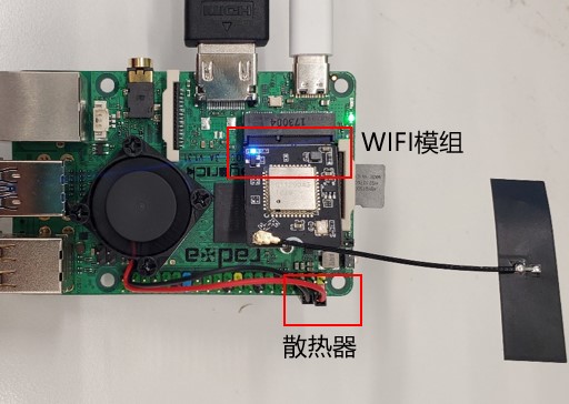 - WIFI模组:先将天线固定到WIFI模组上,再将WIFI芯片插入主板正面的接口中(接口上印有173004),最后再固定好螺丝即可。