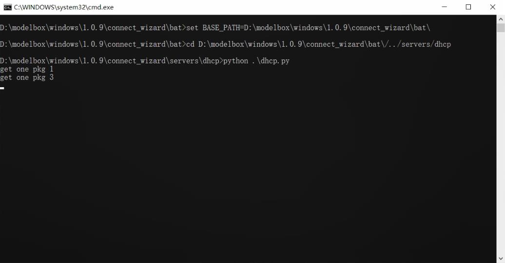 7) 回到ModelBox PC Tool界面,连续点击“下一步”,将弹出dhcp程序,自动为开发板分配固定ip: