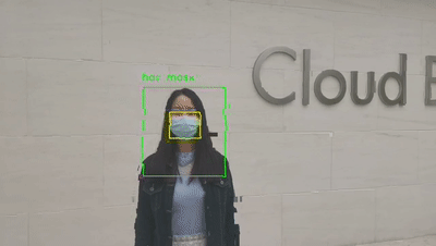 本案例将使用YOLO v3模型,实现一个简单的口罩检测应用,最终效果如下所示: