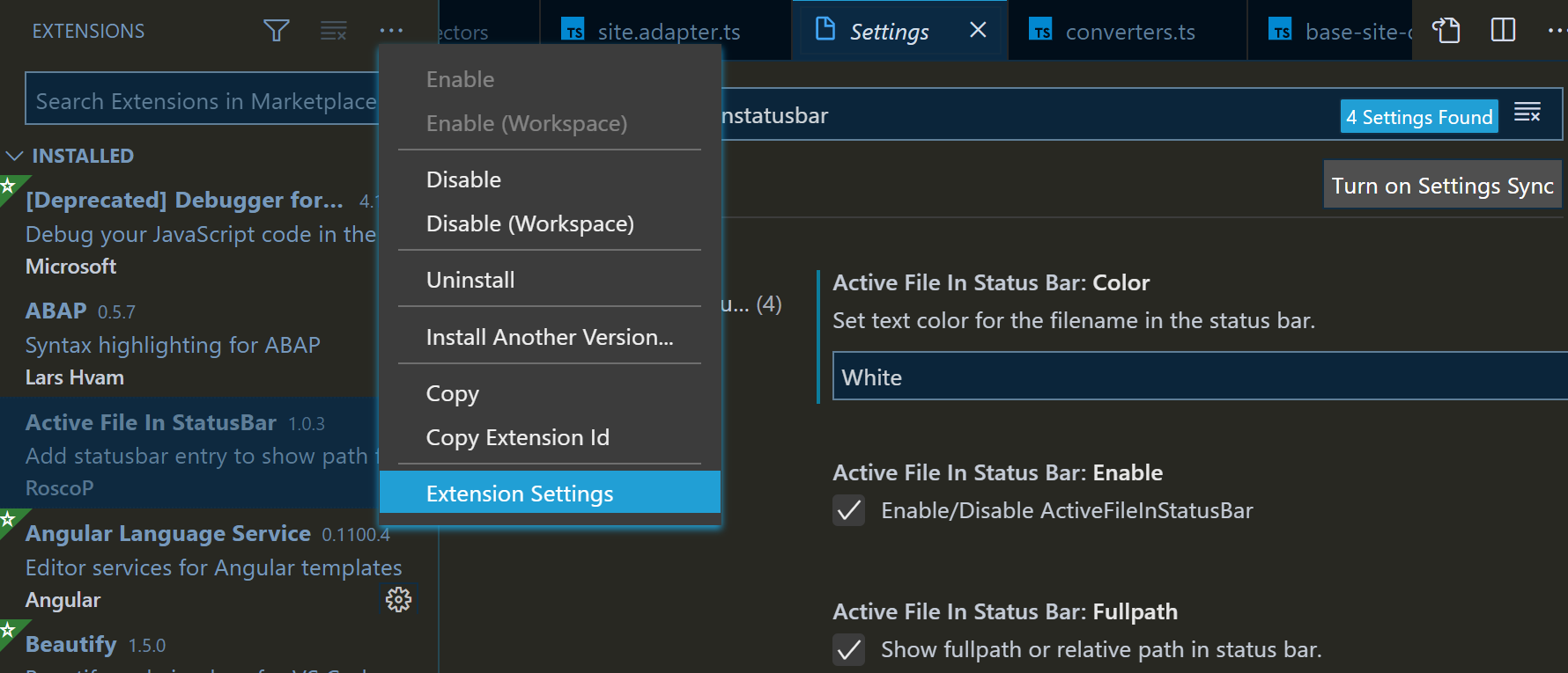 选择 Extension Settings:可以修改 Status Bar 显示的文本颜色: