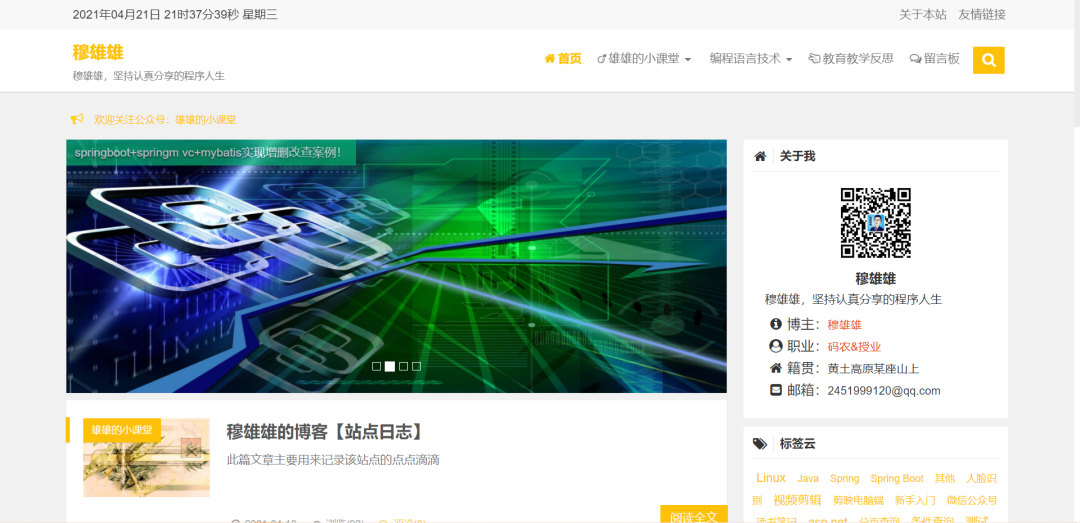最近,我的个人站上线啦,大家可以直接在浏览器的地址栏中输入:穆雄雄.com,轻轻敲击回车,即可直接进入……
