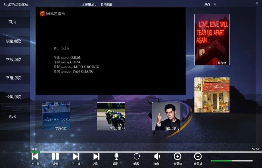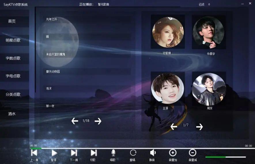 分类点歌里面有DJ神曲,影视金曲,热门流行,全部类型,经典老歌,游戏动漫组成