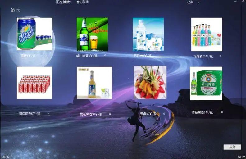 单击酒水可以打开酒水的窗体 单击一款酒水或者饮料会显示共多少元