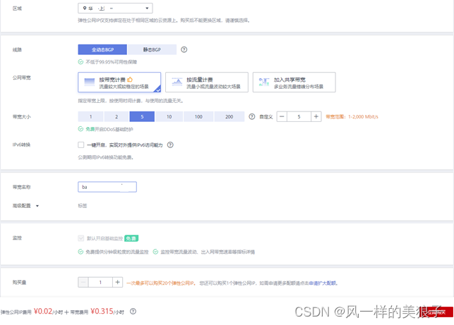 2、申请弹性公网IP和带宽