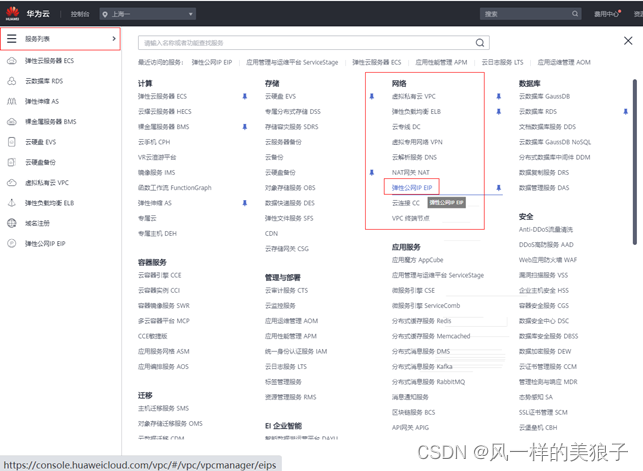登录华为云,进入“弹性公网IP EIP”控制台