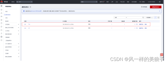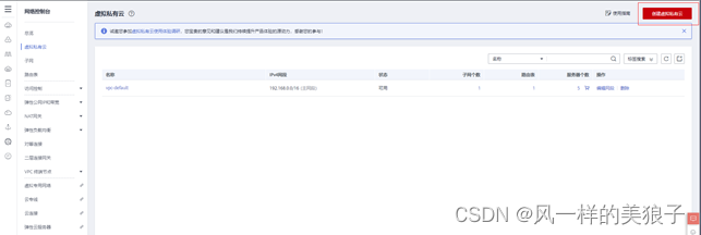 点击右上角“创建虚拟私有云”按钮